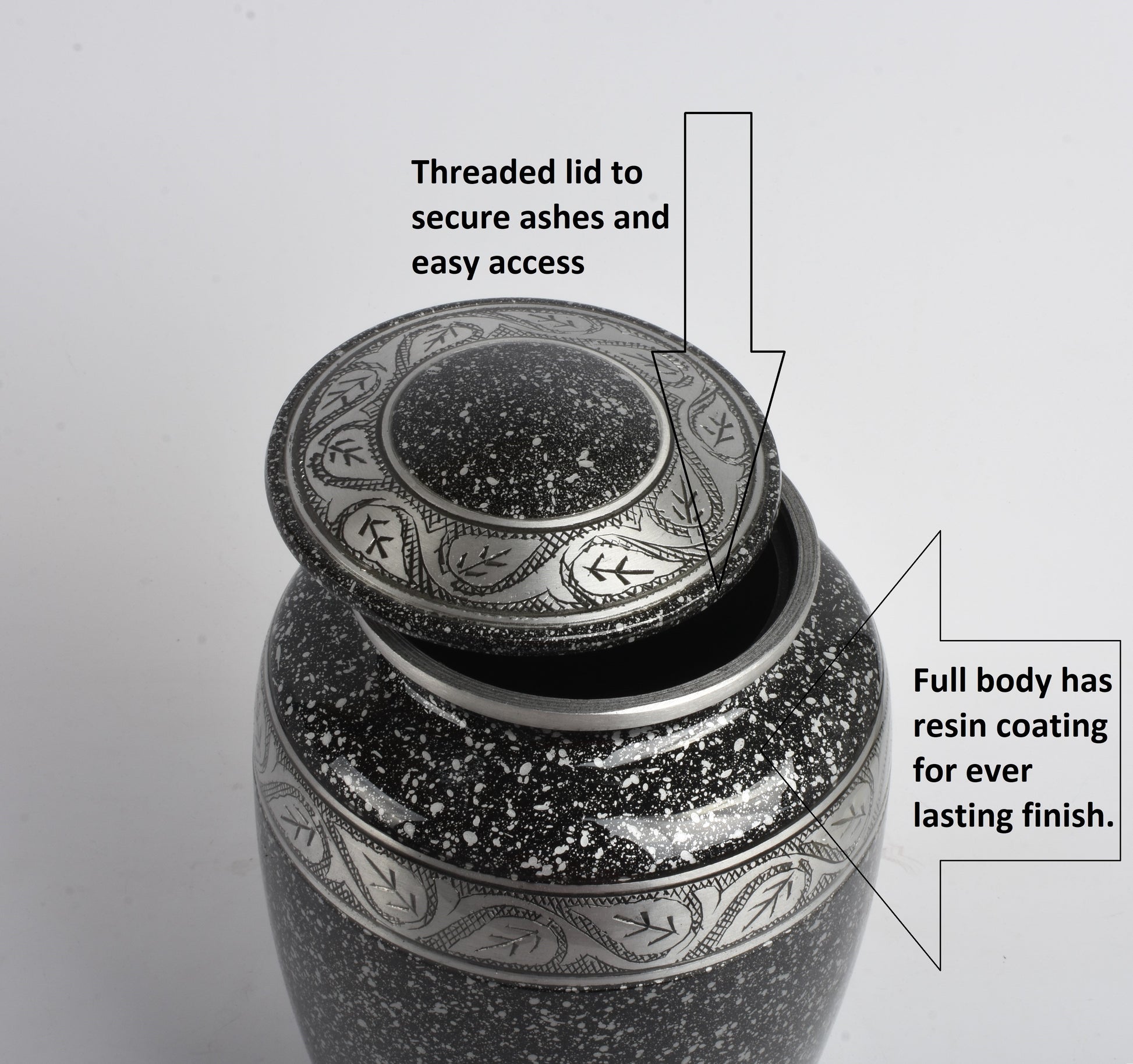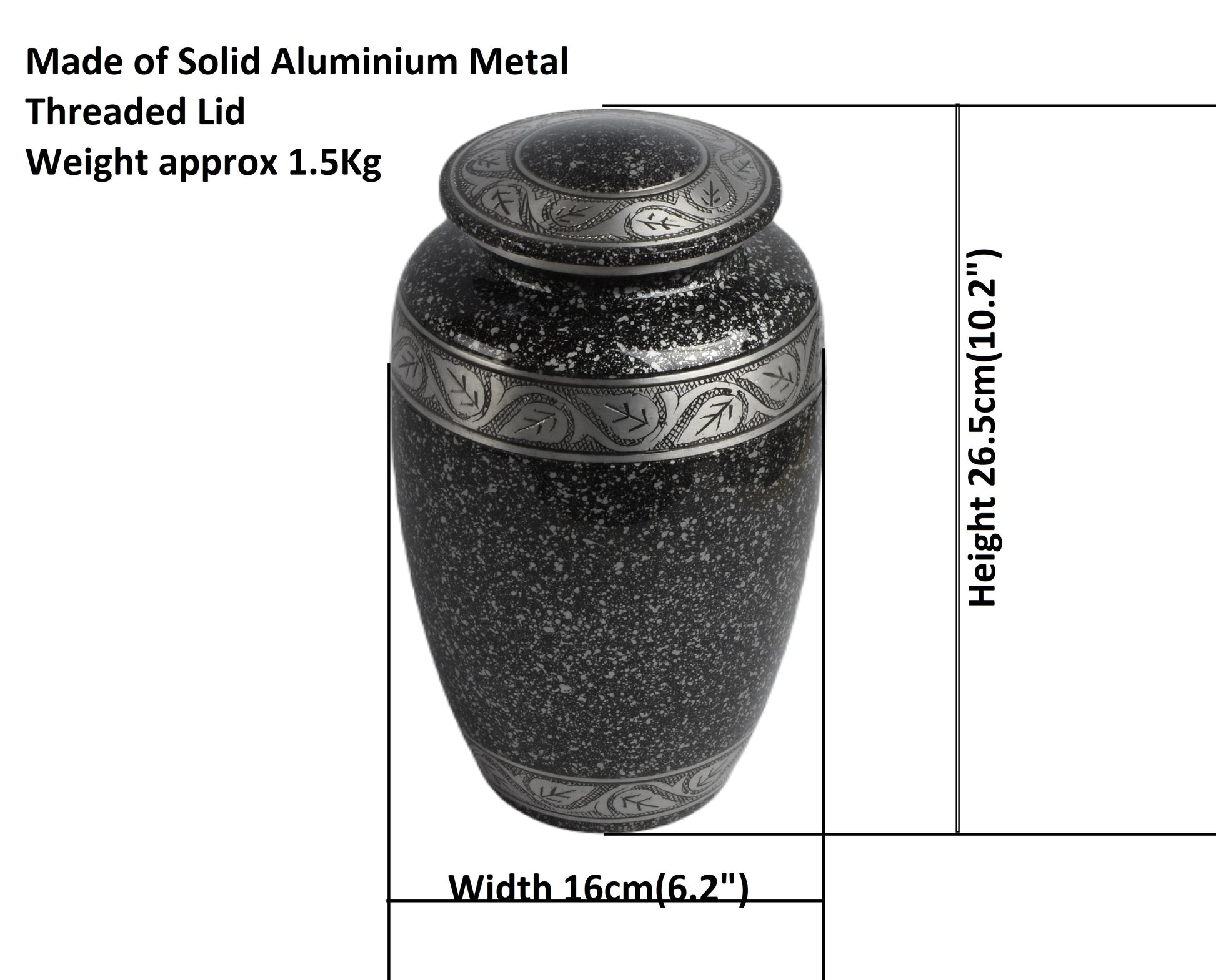 This large cremation urn for ashes is hand crafted by skilled artisans from aluminium and represents the finest possible quality for a memorial at an affordable and accessible price. We are proud to make this beautiful cremation ashes urn available at the lowest possible price in order to allow the bereaved to remember lost loved ones with dignity and peace of mind.