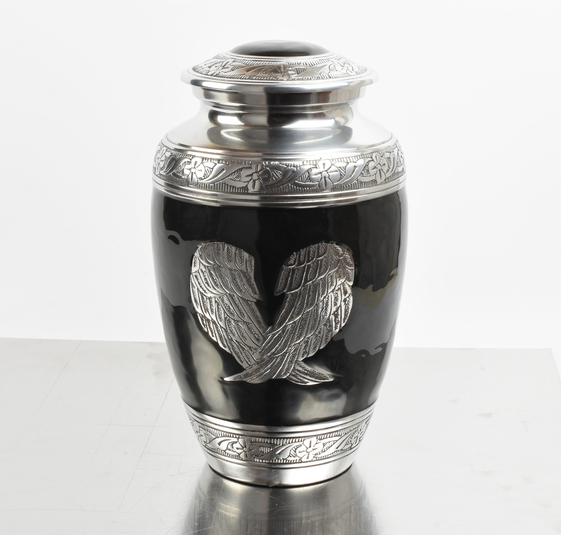 Black And Silver Angel Wings Design Cremation Urn - Hand Made