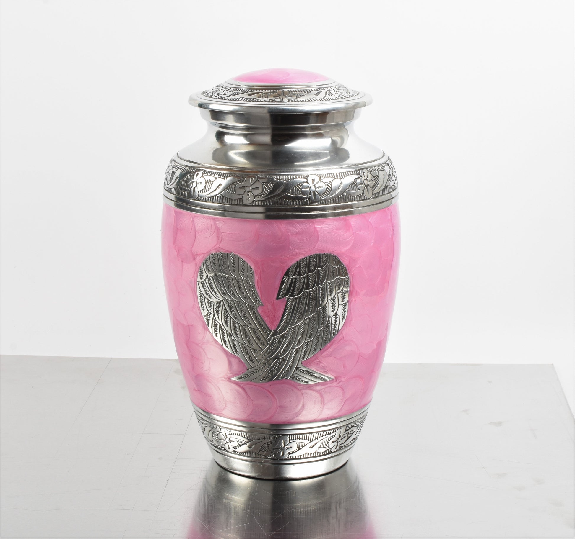 Pink And Silver Angel Wings Design Cremation Urn - Hand Made