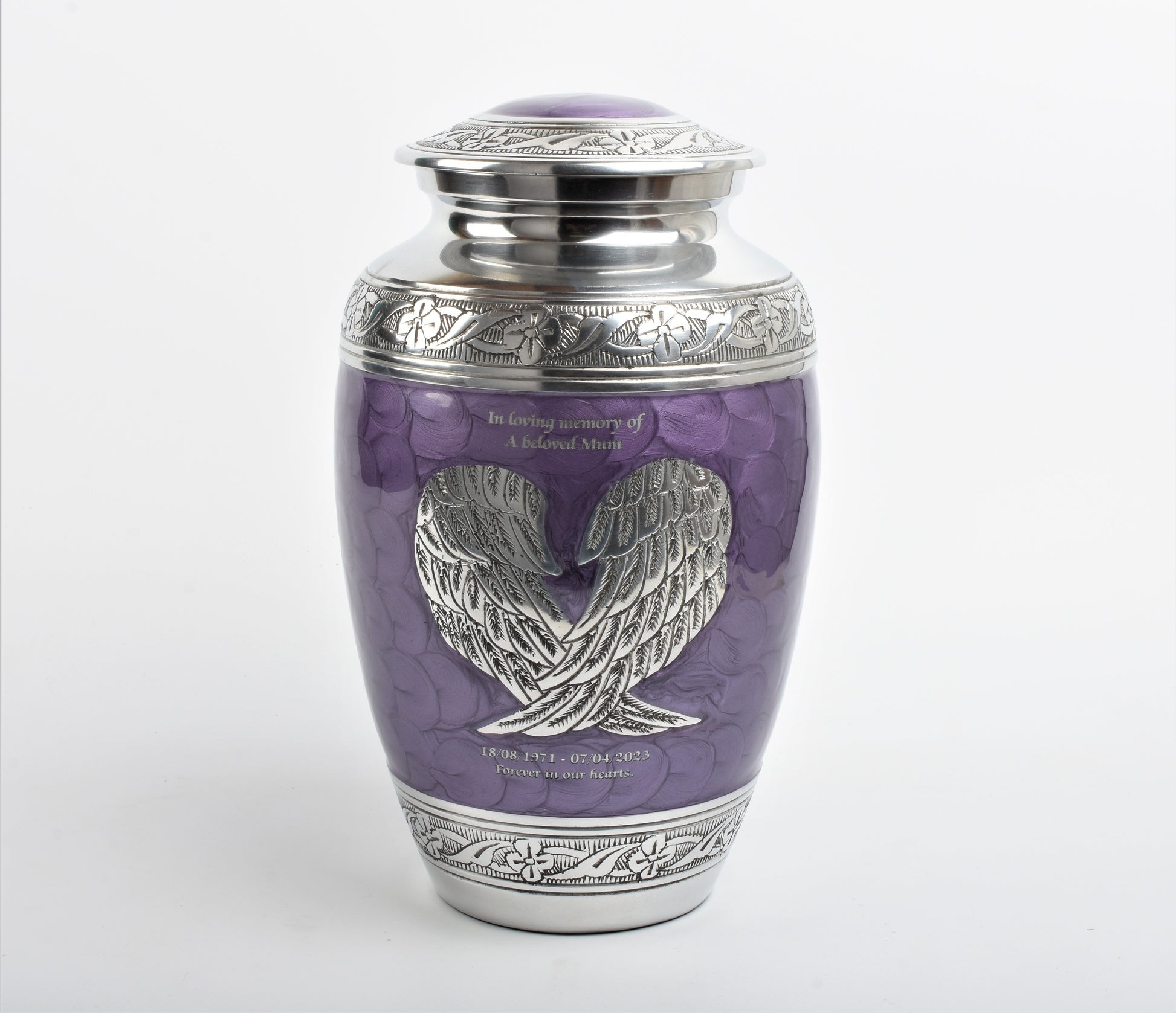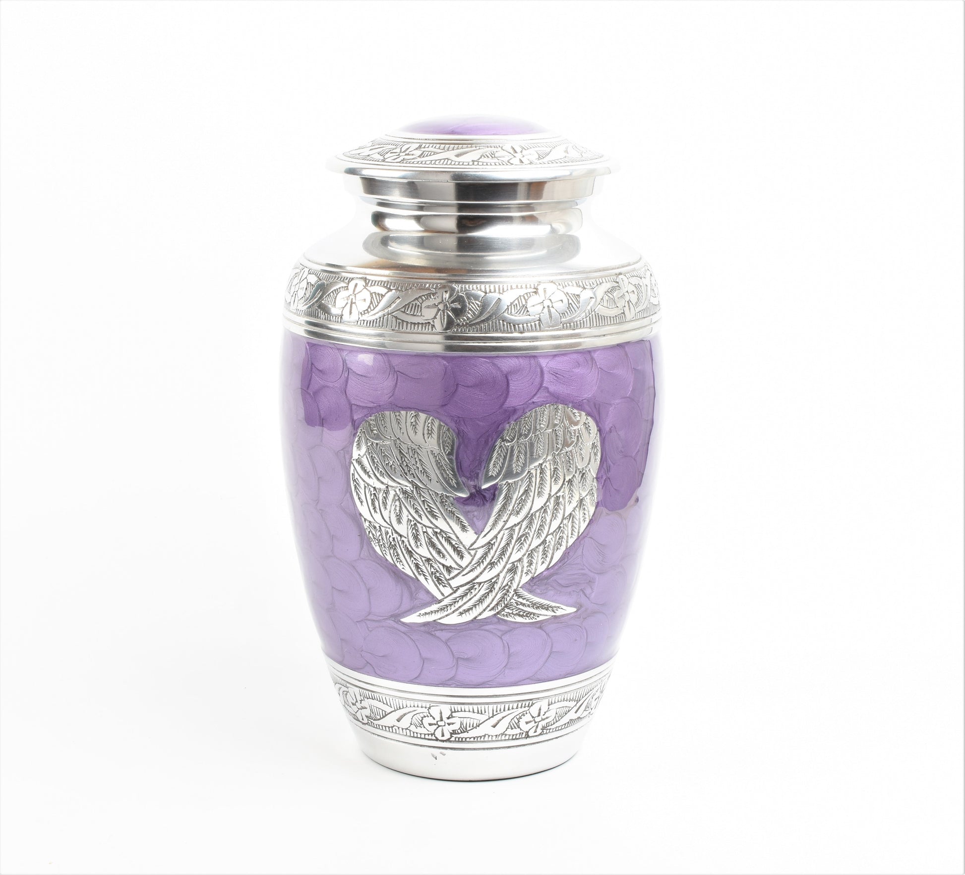 Purple And Silver Angel Wings Design Cremation Urn - Hand Made