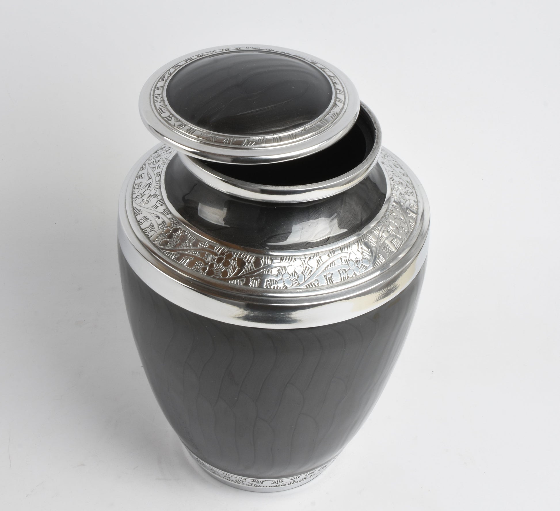 This large cremation urn for ashes is hand casted by skilled artisans from best quality aluminium and represents the premium quality for a memorial at an affordable and accessible price. We are proud to make this beautiful cremation ashes urn available at the lowest possible price in order to allow the bereaved to remember lost loved ones with dignity and peace of mind.