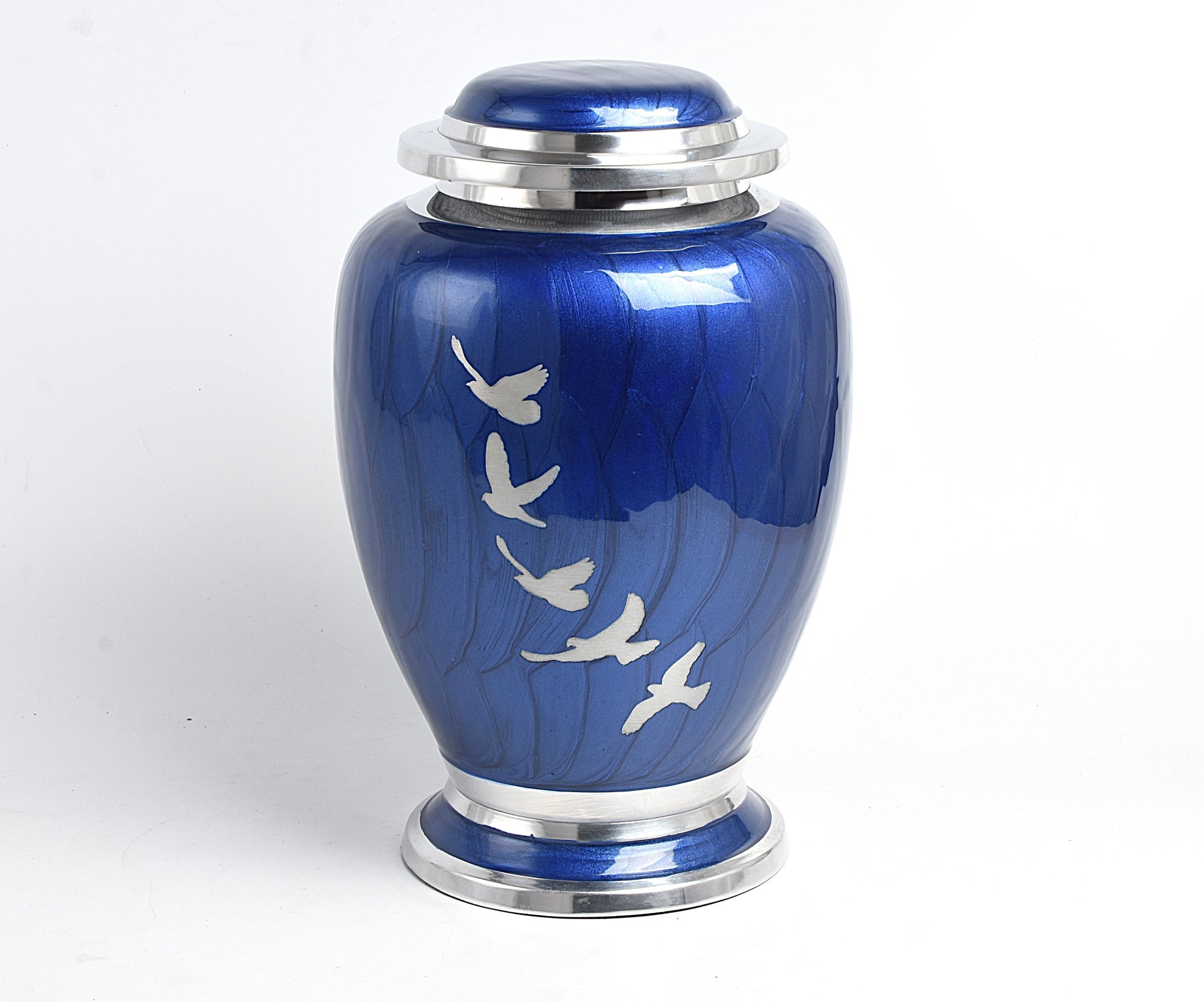 Blue and Silver Flying Birds Urn