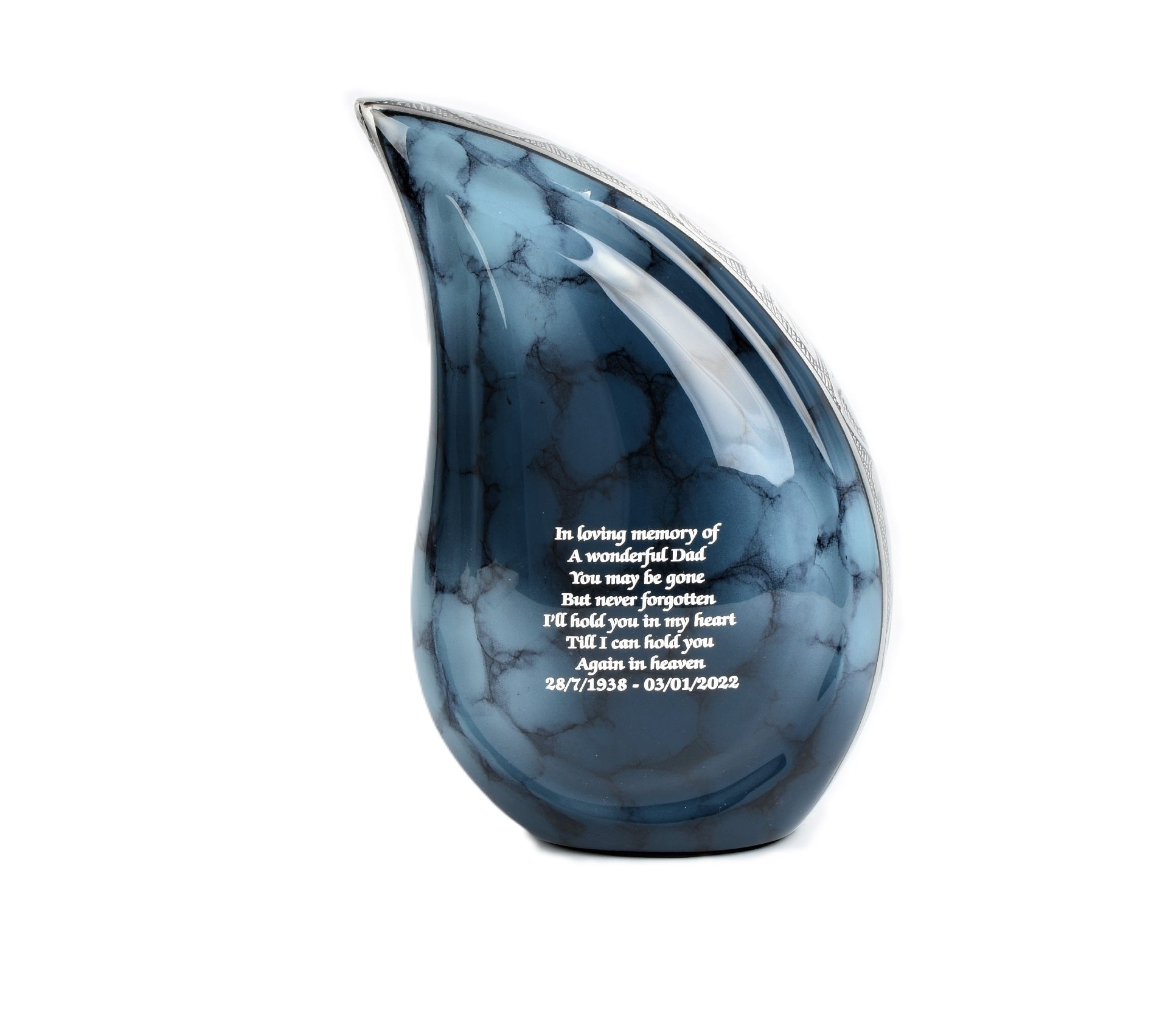 Beautifully Hand Crafted Blue Clouded and Silver Design Teardrop Urn at an Affordable price