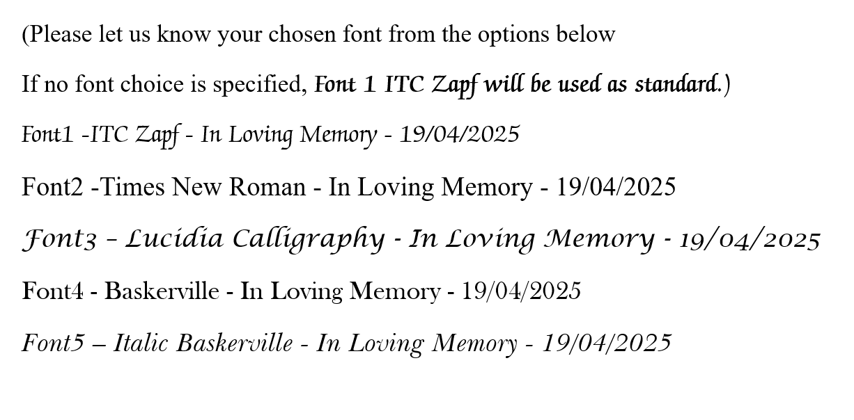 Please note that long date formats are best engraved across two lines, unless a very small font is used. For narrow plaques (especially around 75mm width), date ranges such as: 1st December 1945 – 21st November 2025 must be engraved over two lines to maintain clarity and a clean, professional appearance.