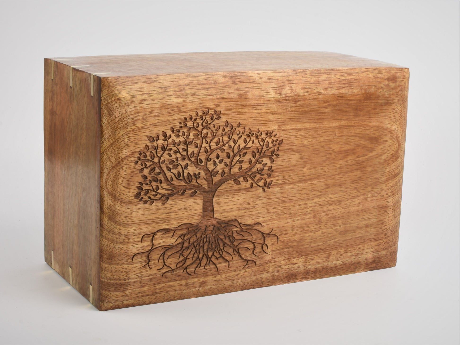 Extra Large Double Capacity Solid Wood Tree Of Life Casket