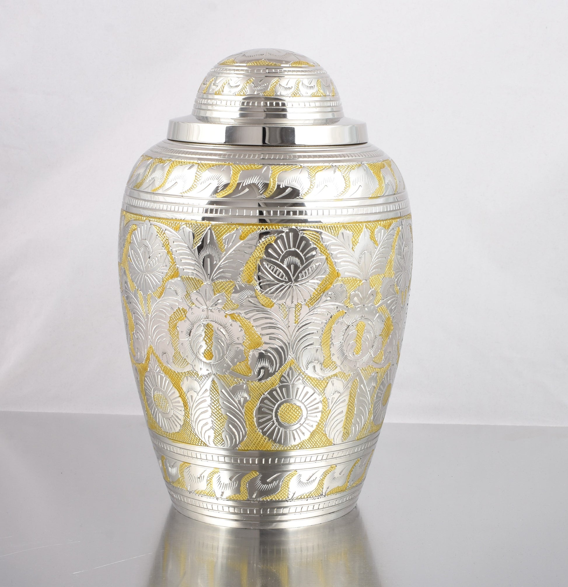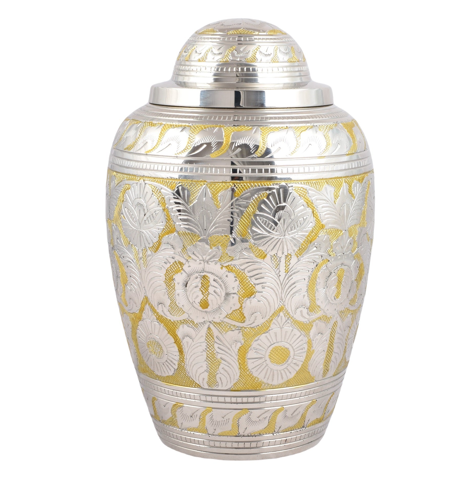 Golden and Silver Hand Engraved Adult Large Cremation Urn