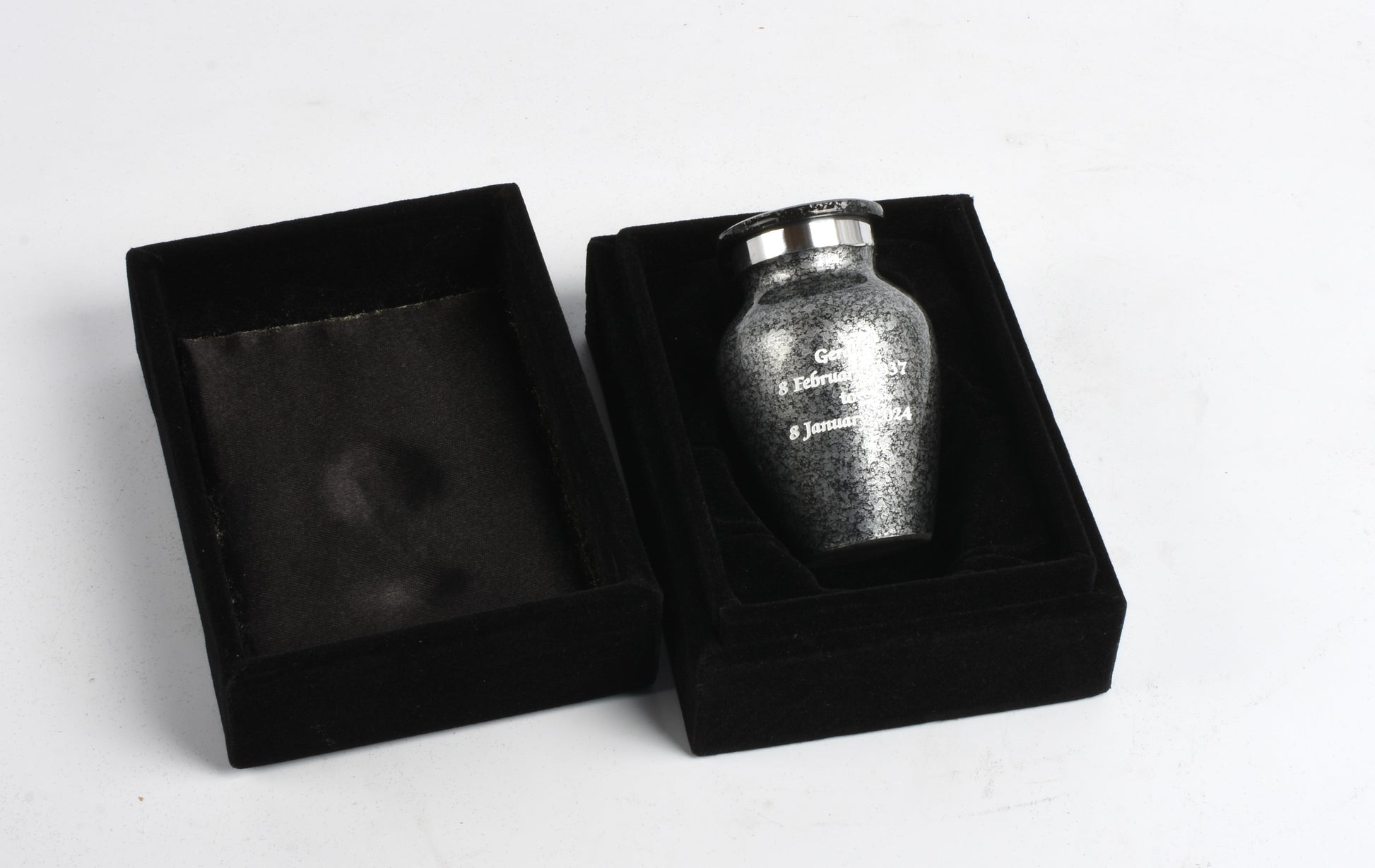 Simply beautiful and affordable piece of memorial urn. It comes presented in a beautiful velvet box .