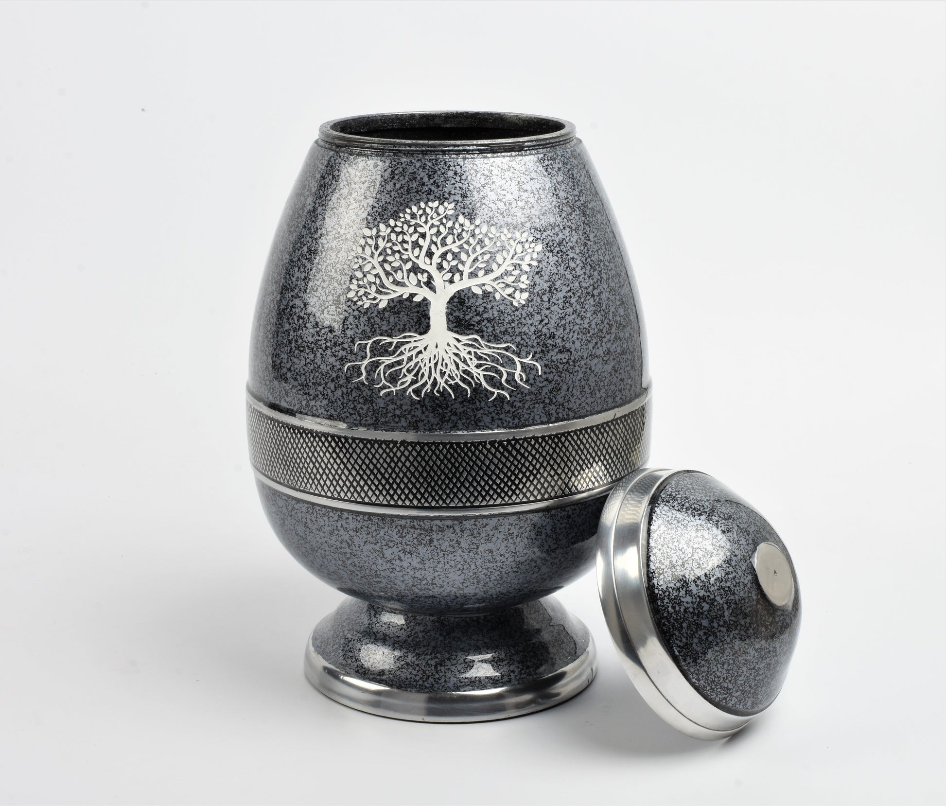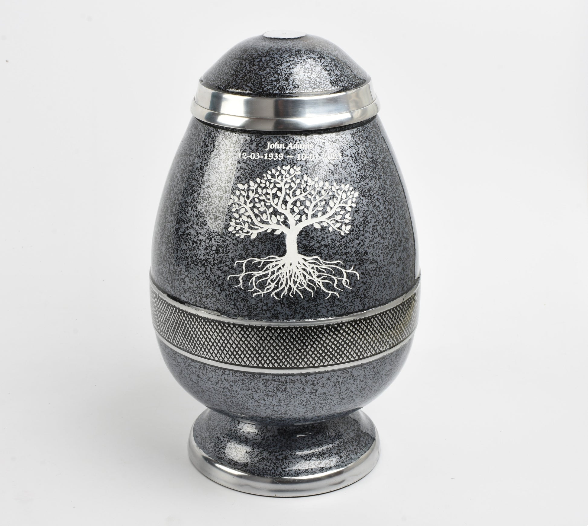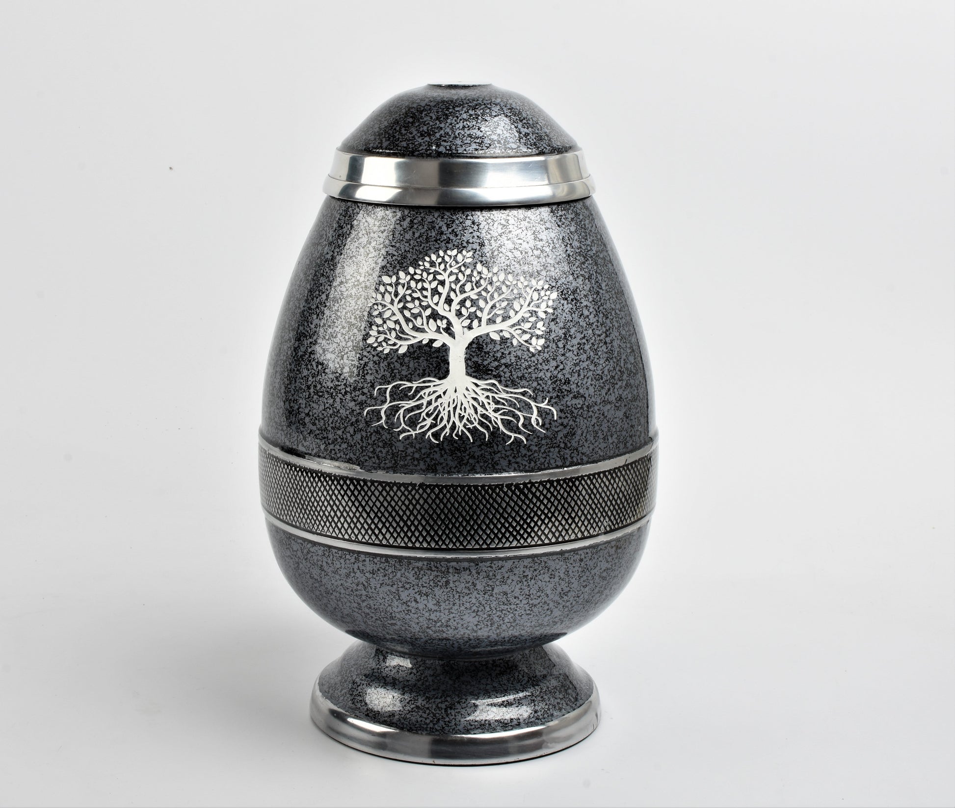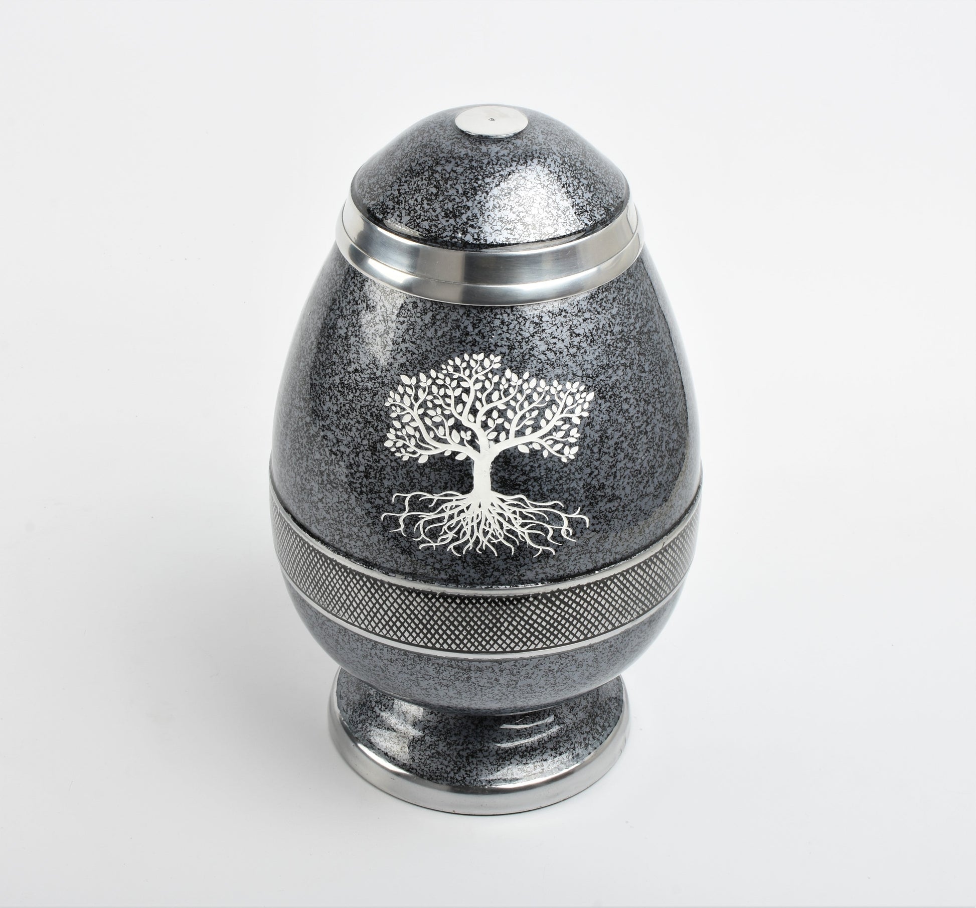 Egg Shape Grey & Silver Tree Of Life Personalised Cremation Urn - Hand Made