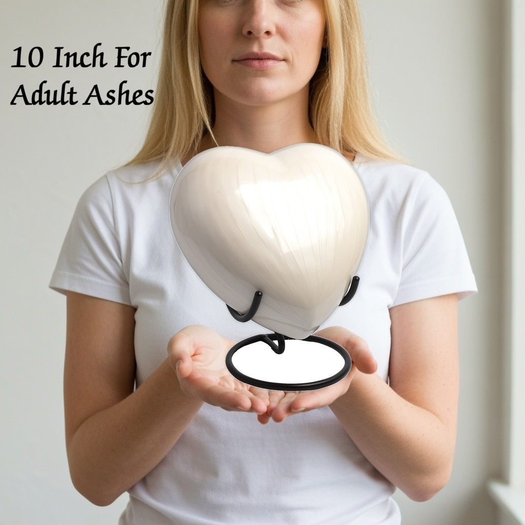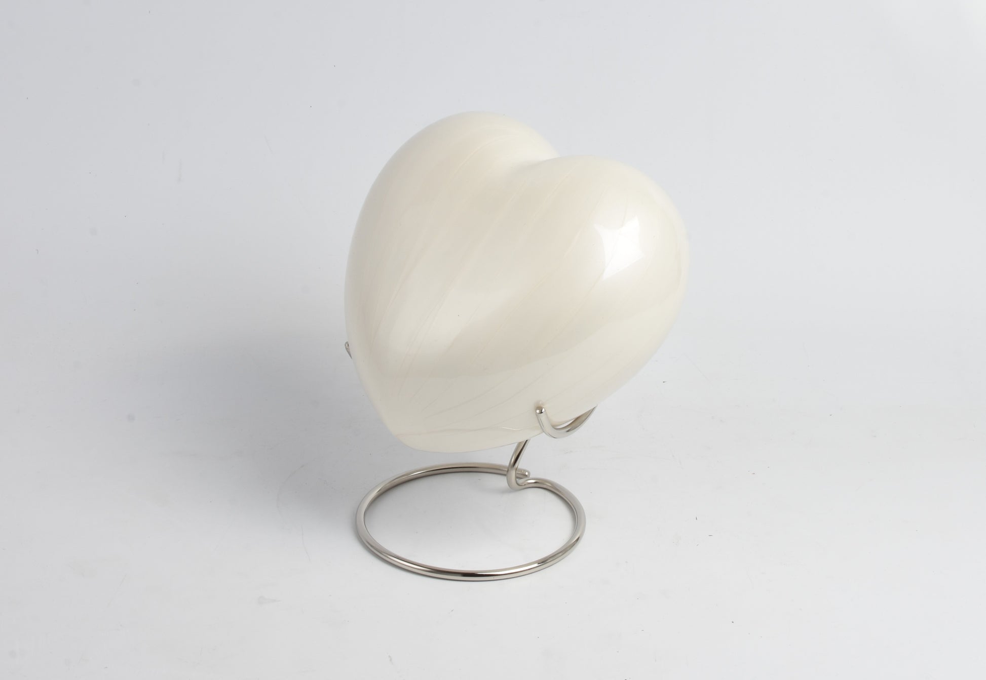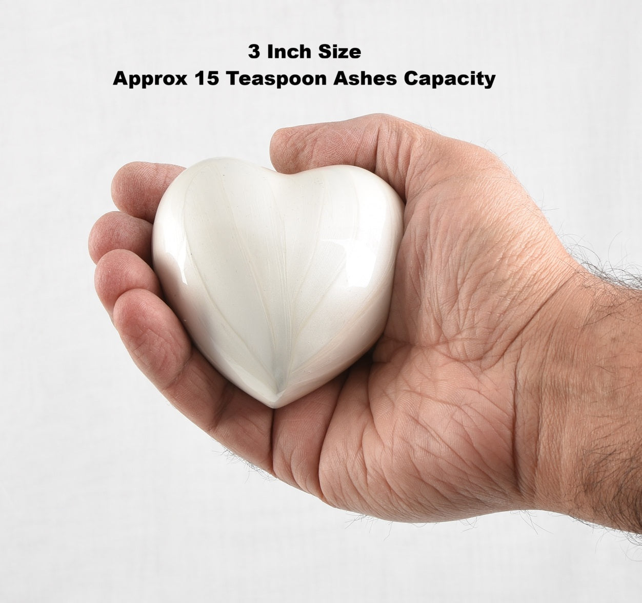 Pearl White Heart Small Keepsake Urn - A beautiful piece of art work hand crafted by skilled artisans - Multiple size and style available for large , medium, small human and pet body ashes