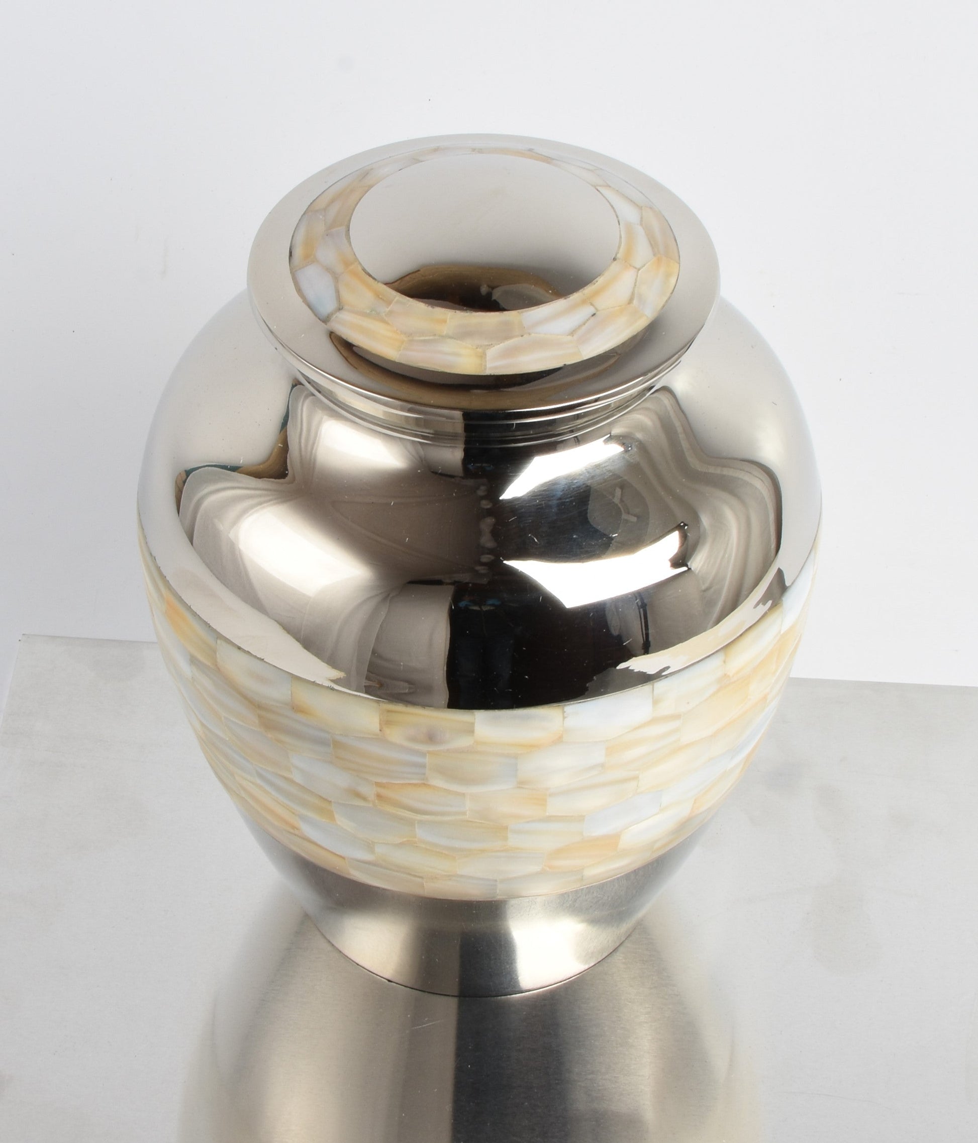 Mother of Pearl And Silver ( Nickel) Cremation/Funeral/Remembrance Urn - Hand Made