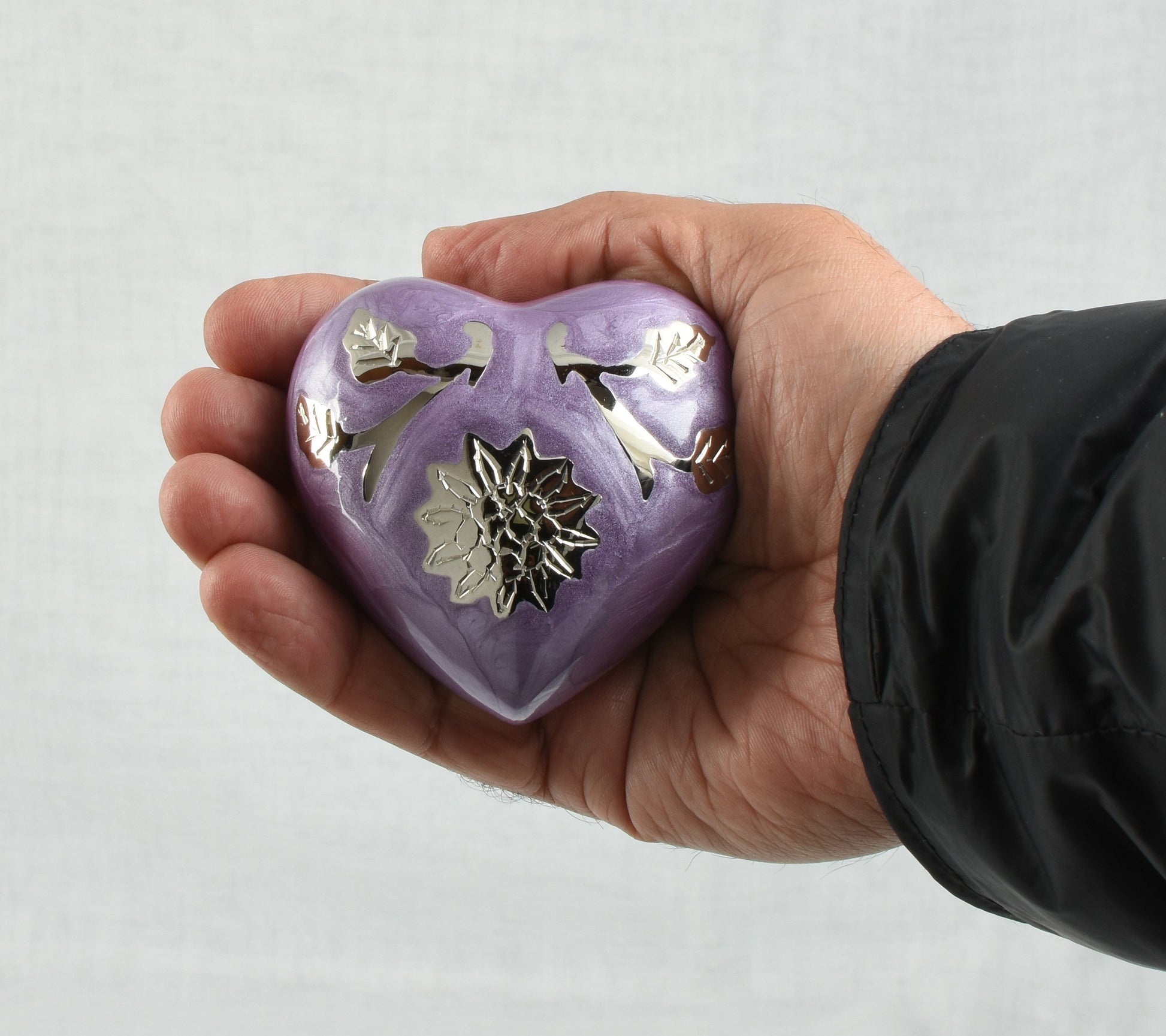 Sunflower On Purple Heart Shape Small Keepsake Urn With New Design- A beautiful piece of artwork handcrafted by skilled artisans.