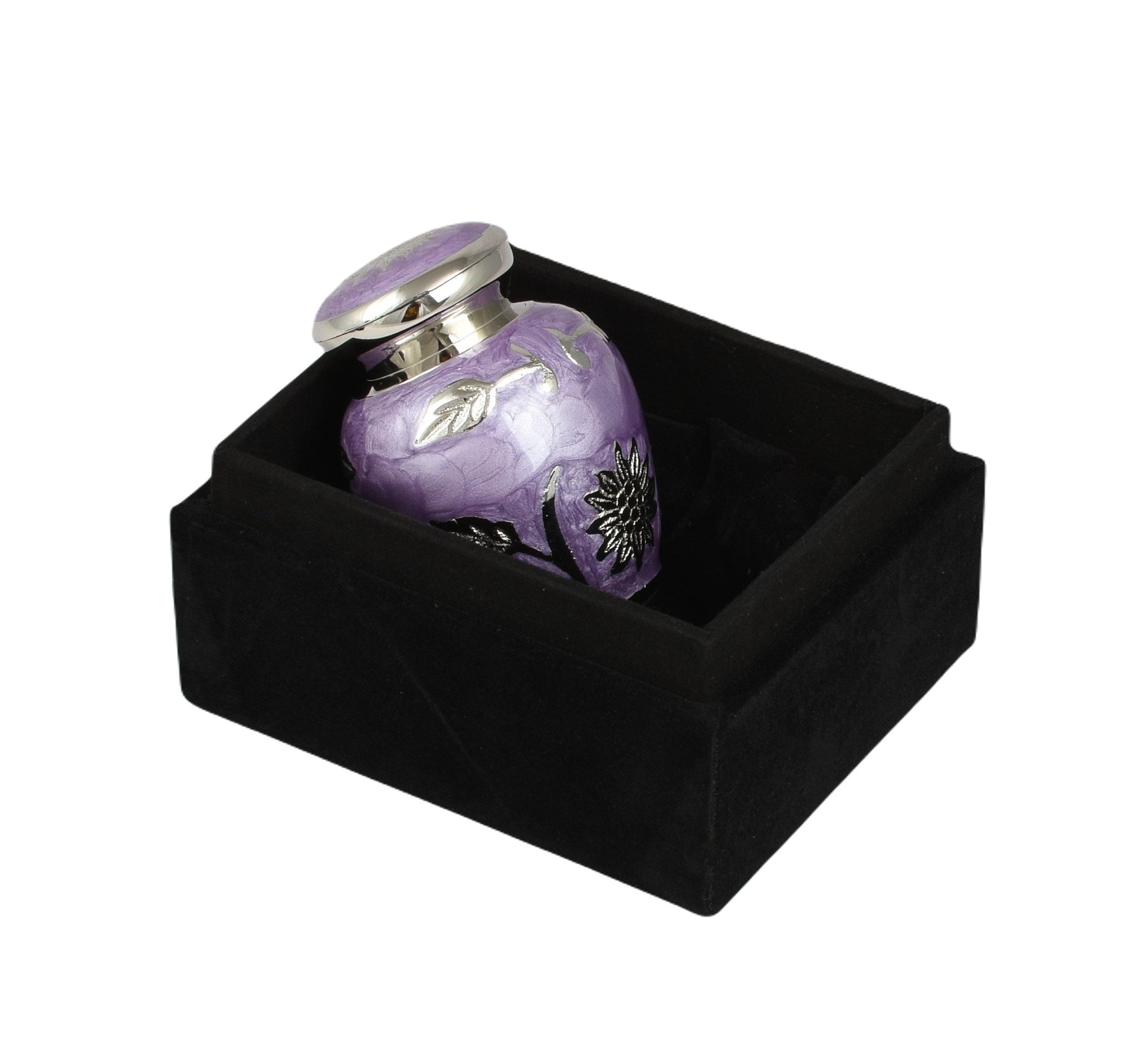 Purple Mini Keepsake With Flower Design Presented In A Velvet Box - A beautiful piece of art work hand crafted by skilled artisans.