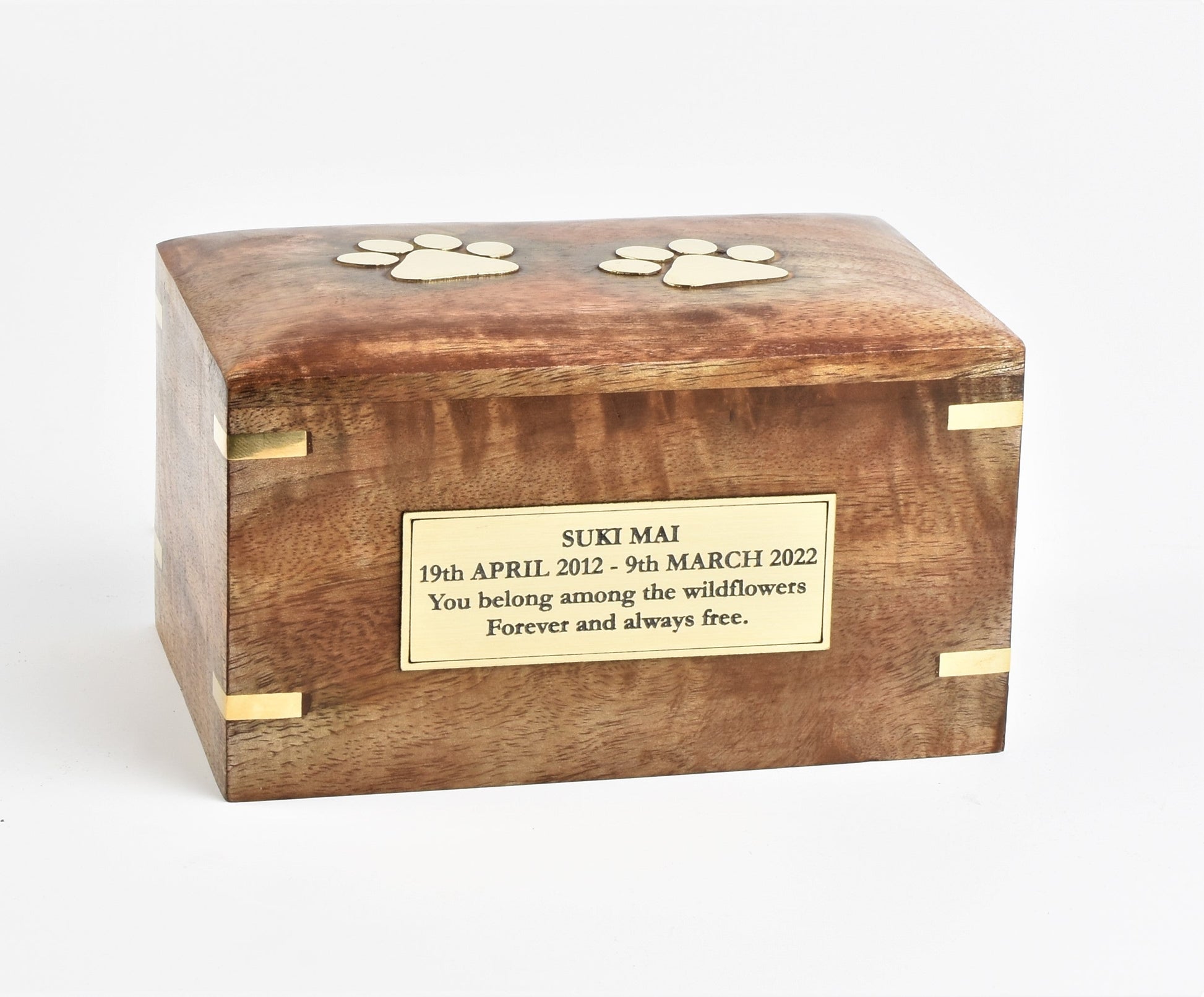 Solid Wood Biodegradable Paw Print Pet Cremation Ashes Casket Urn Medium/Large