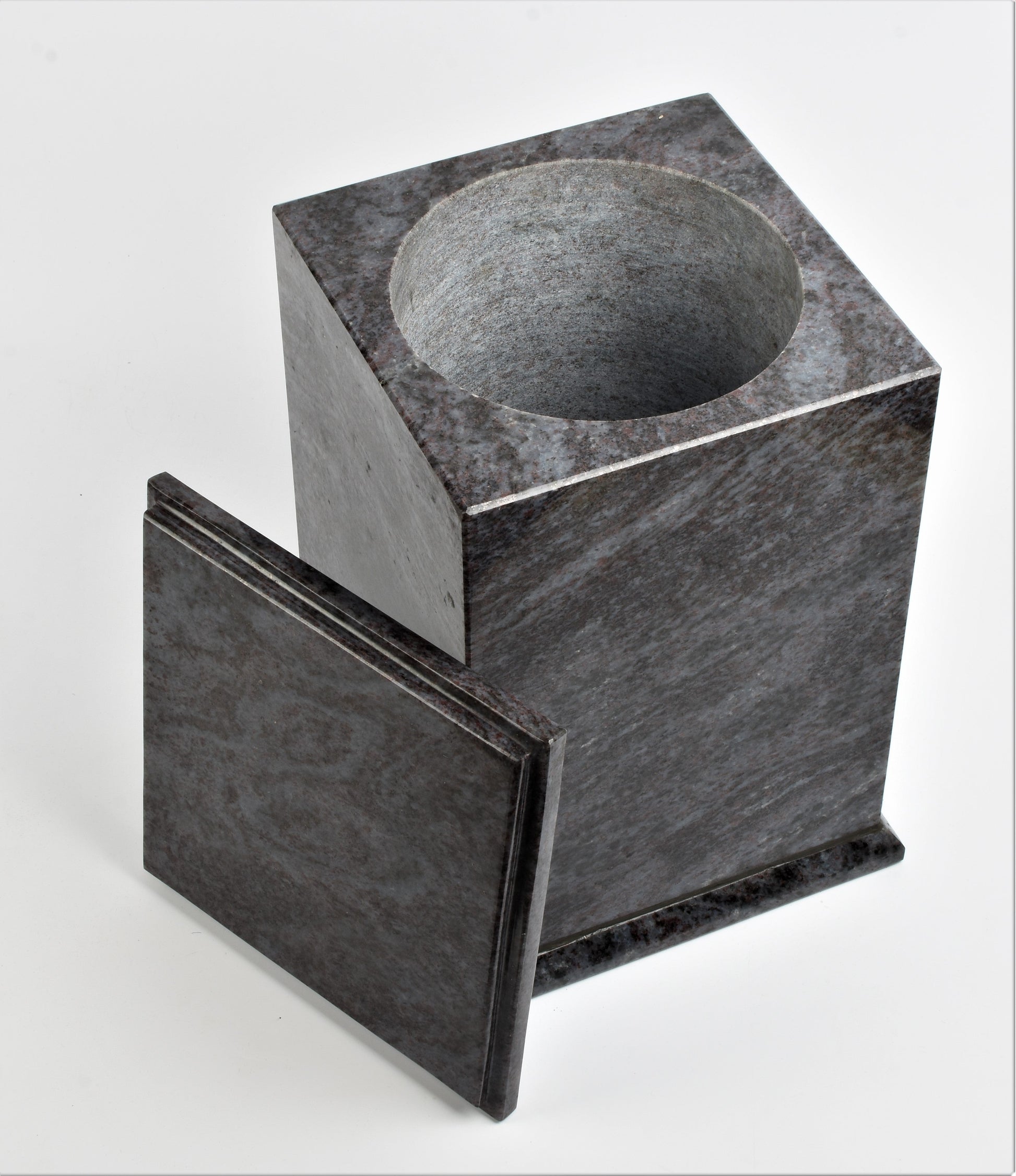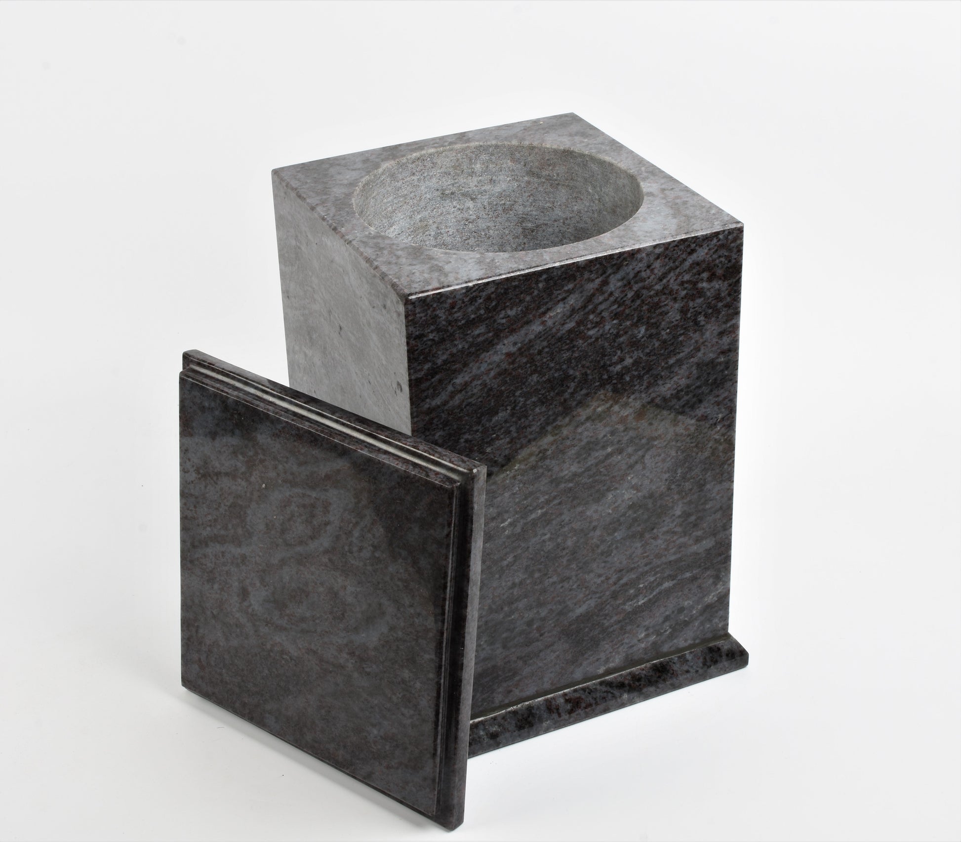 Our stone cremation urns are made of fine granite stone marble. This adult granite stone casket urn is a unique choice for memorials. This stunning memorial funeral urn is handcrafted from granite stone. The body of this urn is made from a single piece of granite stone. Handcrafted to reveal gorgeous natural texture and colours of granite marble. You can feel the luxurious finish of this ashes urn. Each urn is finished and polished by hand. As marble is a natural product and differs in pattern and no two marble urns will ever be the same so urn might slightly differ from the one in the photo.