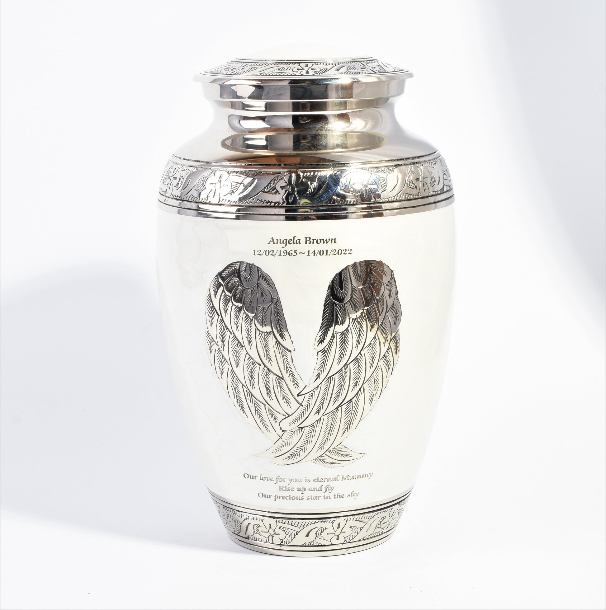 White And Silver Angel Wings DesignCremation Urn - Hand Made