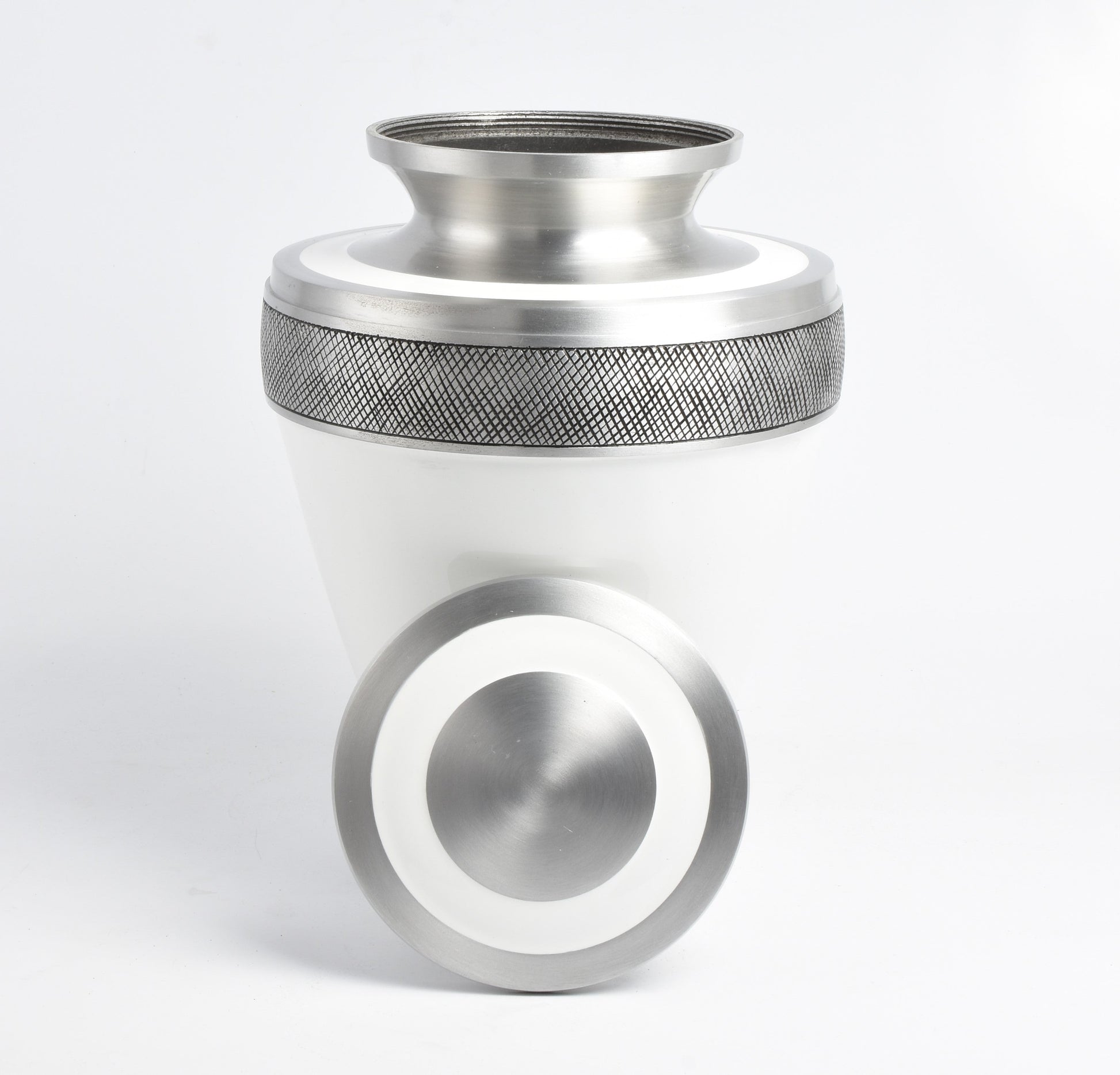 White Milano Cremation/ Funeral/ Remembrance/ Memorial Urn With Silver