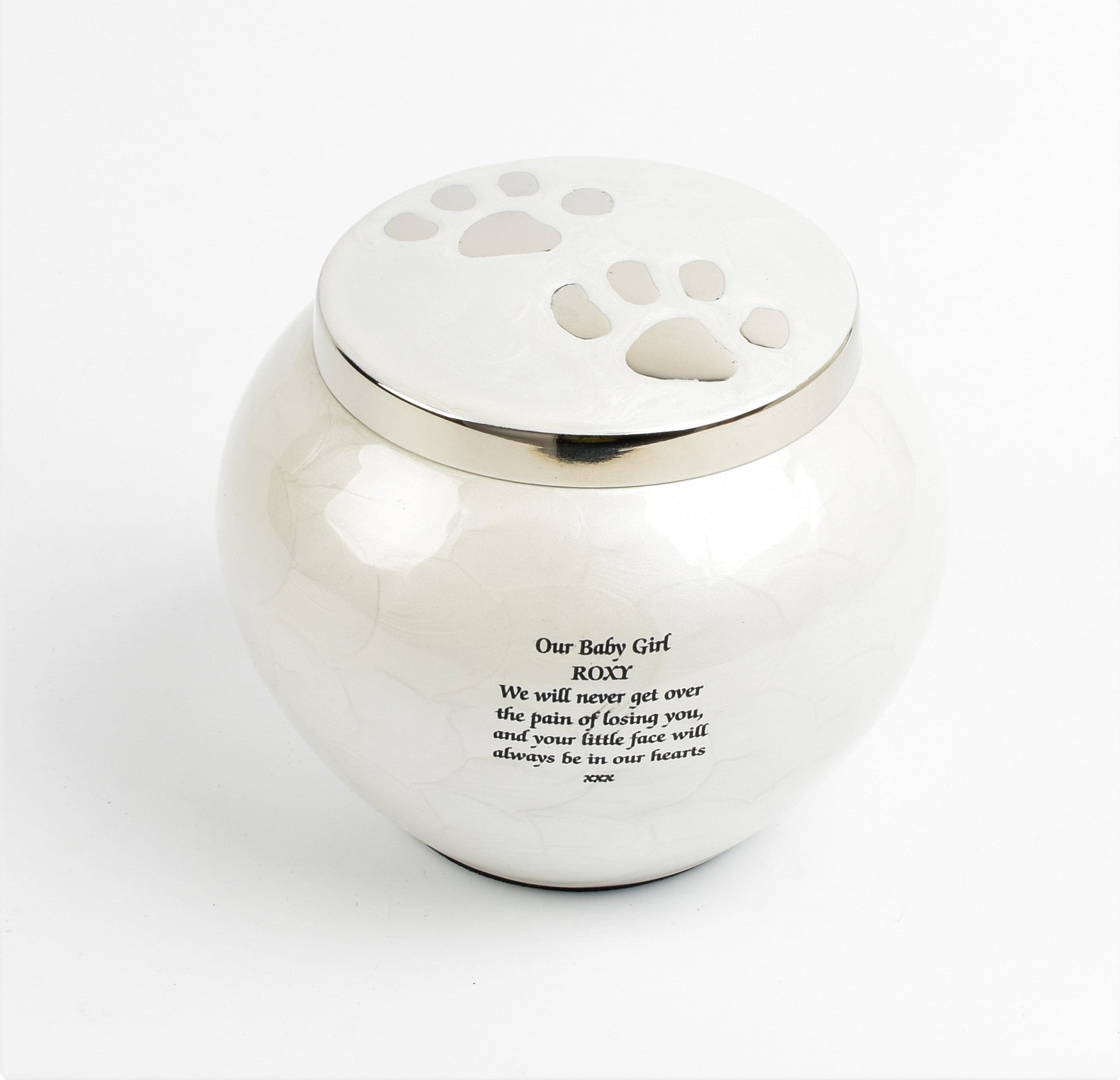 Beautifully Handcrafted White Odyssey Paw Print Pet Urn