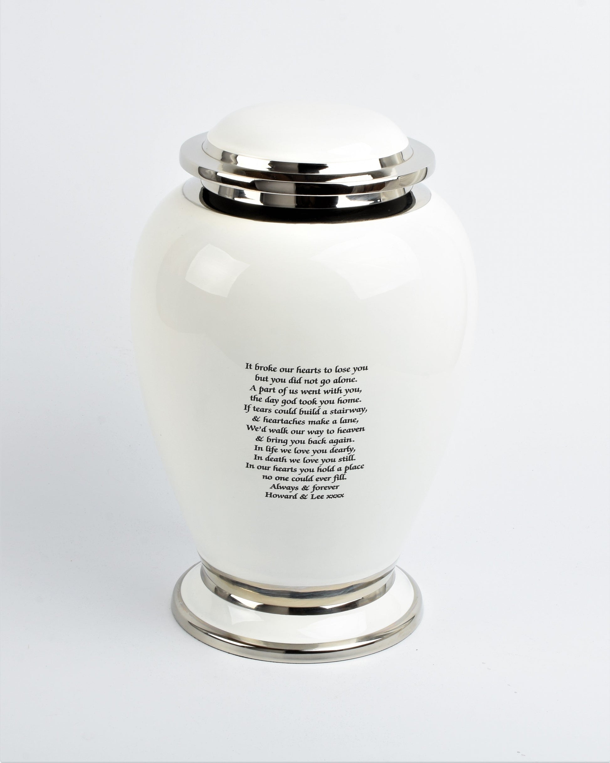 Personalisation: You have the option to fully personalise it with the text of your choice, for a little fee or can order without engraving too. For the engraving option please leave us a note in the Additional Comments section before proceeding to the checkout or you can email us at urnswithlove@gmail.com.