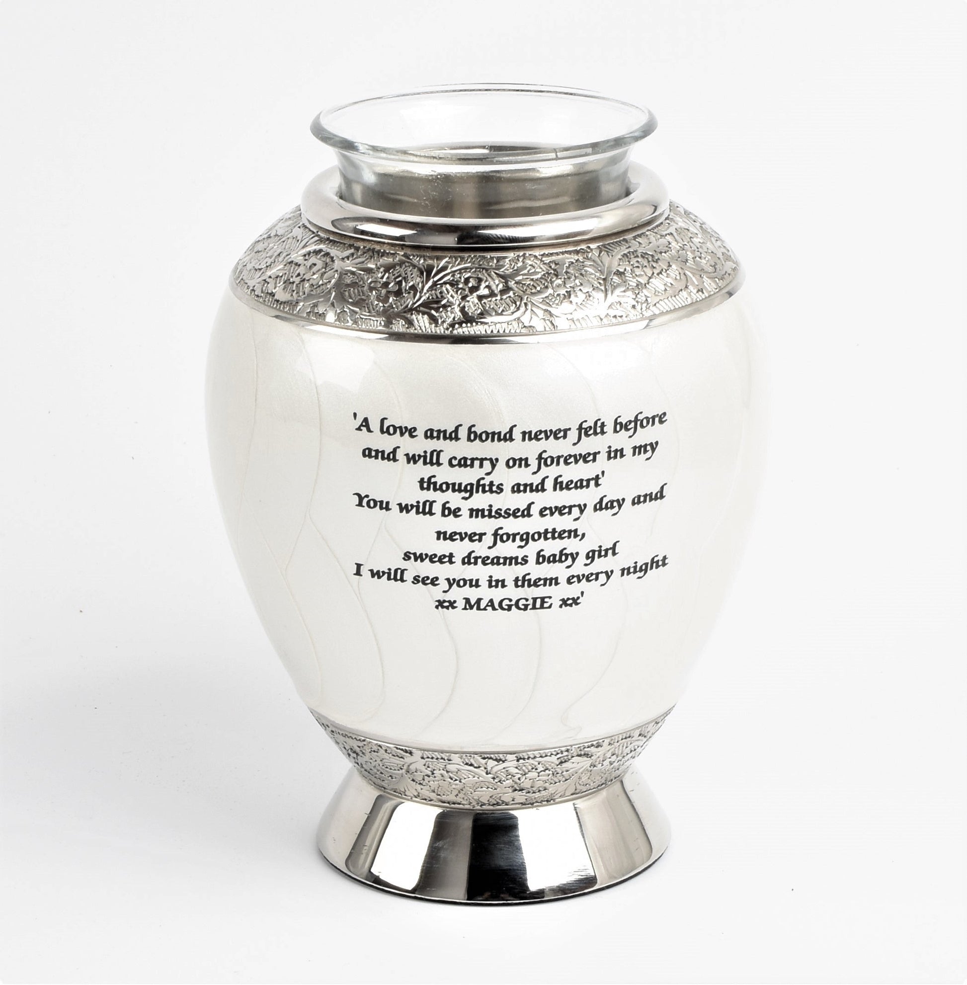 Please note that not all urns offer an engraving option. You can add your engraving text in the Order Special Instructions section on the Cart page, or email your details to urnswithlove@gmail.com after purchase.