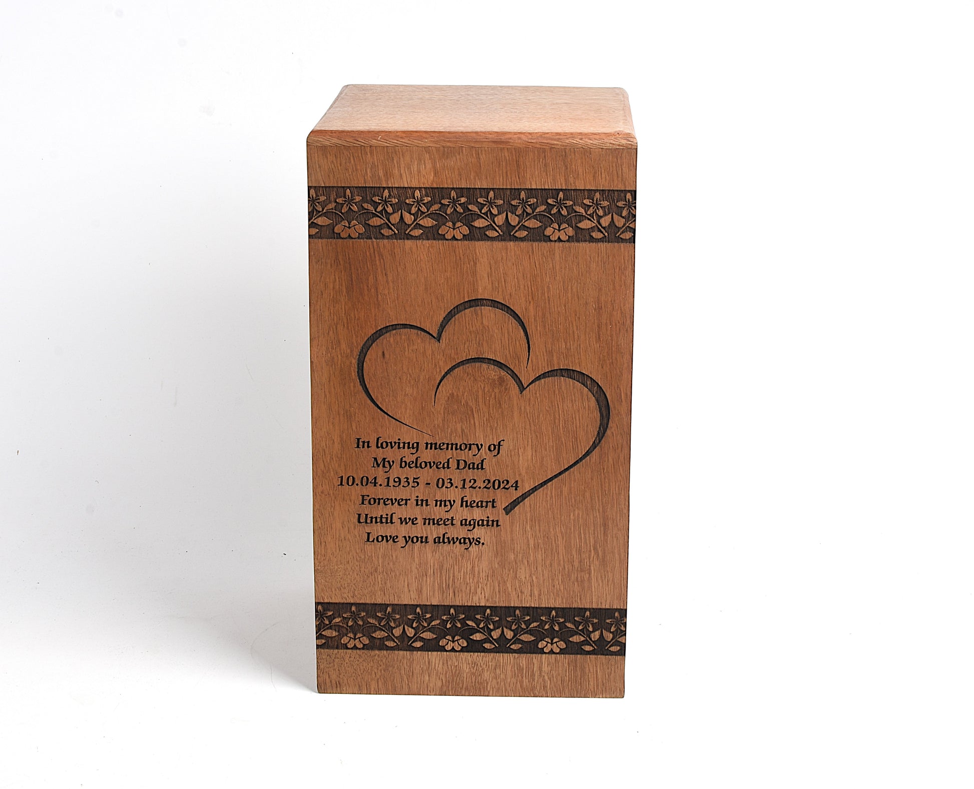 Personalisation: You have the option to fully personalise it with the text of your choice, for a little fee or can order without engraving too. For the engraving option please leave us a note in the Additional Comments section before proceeding to the checkout or you can email us at urnswithlove@gmail.com.